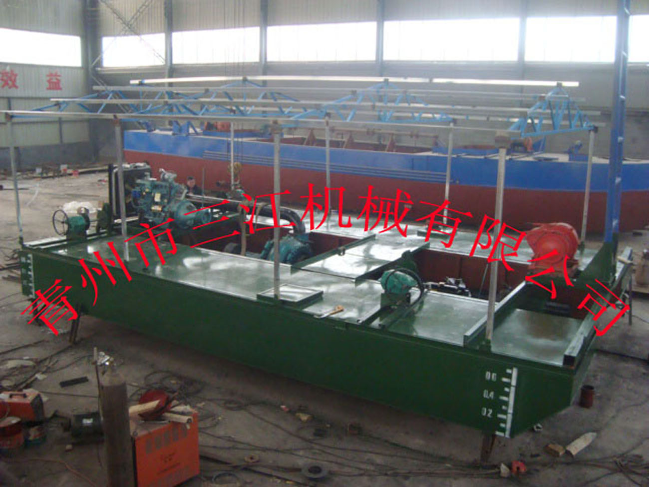 發(fā)往尼日利亞的抽沙船裝箱發(fā)貨。本設(shè)備為射吸式抽沙設(shè)備,抽沙系統(tǒng)為一套8英寸專(zhuān)用沙礫泵,每小時(shí)抽沙能力達(dá)到200立方米,排出距離達(dá)到500米。為了適應(yīng)尼日利亞多雨的氣候環(huán)境,該設(shè)備在整個(gè)作業(yè)面上加裝了防雨棚,有效增加了設(shè)備的防雨防銹能力,也極大的增加了操作人員的舒適度。本設(shè)備設(shè)計(jì)緊湊,整個(gè)設(shè)備可裝入一個(gè)40尺的超高柜,便于長(zhǎng)途海運(yùn),有效節(jié)省海運(yùn)費(fèi)。圖為該設(shè)備正在裝箱中。