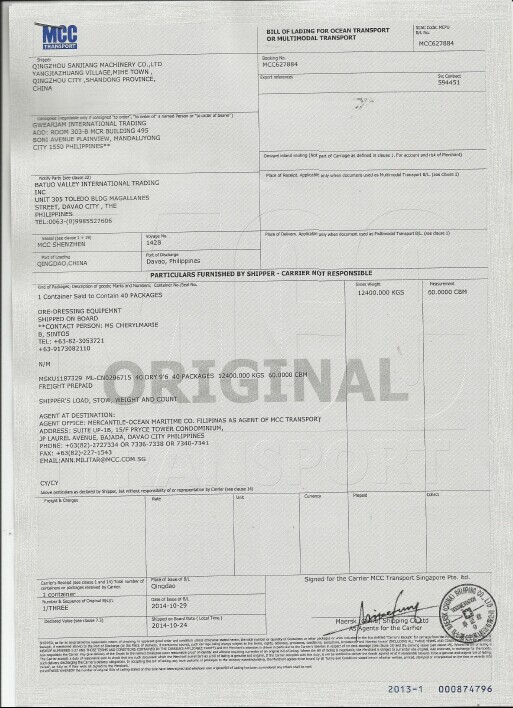 馬士基船公司菲律賓達(dá)沃港提貨單