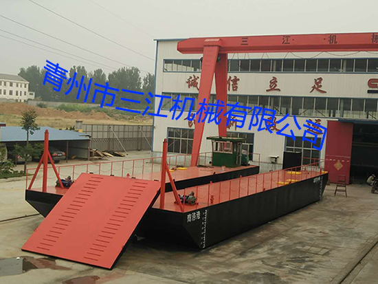 2.本設(shè)備配用動(dòng)力為柴油機(jī)或電動(dòng)機(jī)(配用電動(dòng)機(jī)時(shí),可另配柴油發(fā)電機(jī)組提供全船動(dòng)力),結(jié)構(gòu)簡單,操作容易,自動(dòng)化程度高,是內(nèi)陸水域或近海運(yùn)輸砂石、工程車輛、工程人員等的理想工具。